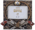Double revolver frame with rope and badge accents. Resin. Holds 6 x 4 photo.